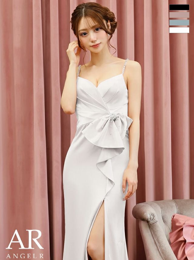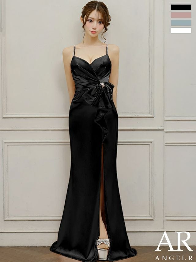 大胆なスリットで美脚を魅せる♡ [Angel-R/エンジェルアール] 高級 バースデー ブランド タイトロングドレス 谷間 大人 スリット 上品 キャミソール ビジュー ウエストリボン サテン タックデザイン