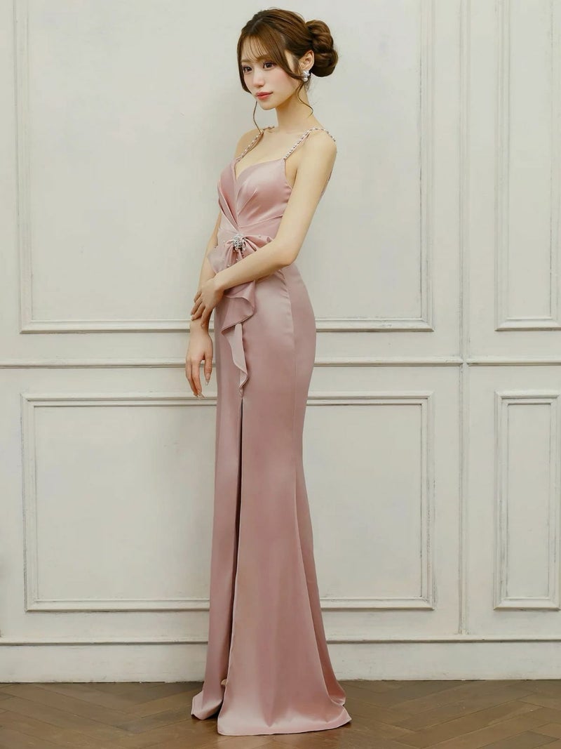 5. [Angel-R/エンジェルアール] 高級 バースデー ブランド タイトロングドレス 谷間 大人 スリット 上品 キャミソール ビジュー ウエストリボン サテン タックデザイン