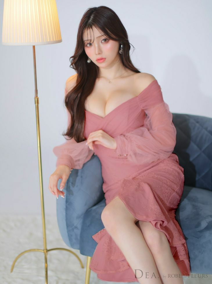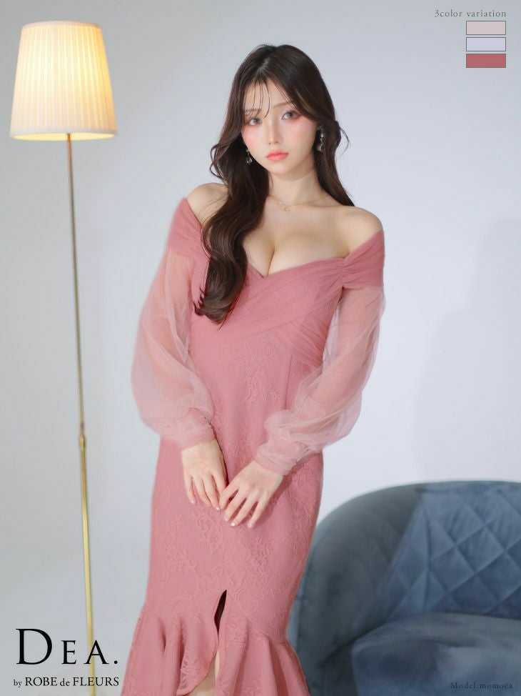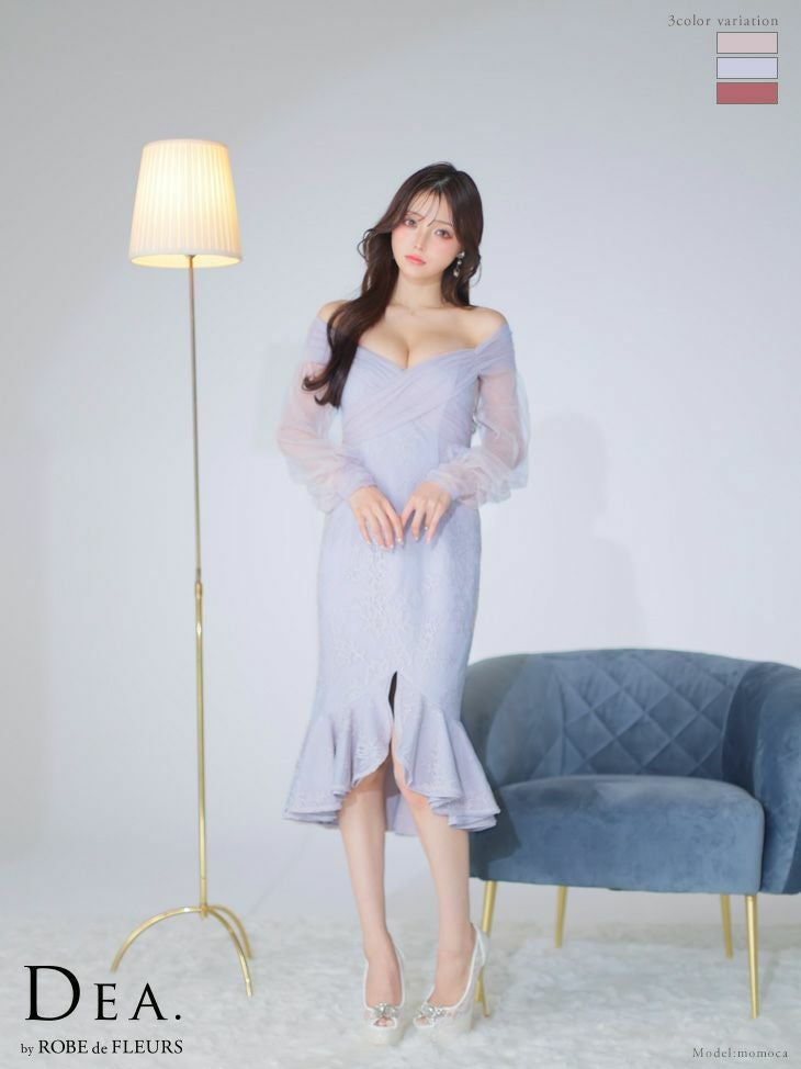 上品なセクシーさを演出☆ [DEA.byROBEdeFLEURS/ディアバイローブドフルール] 高級 オフショルダー チュール 長袖 袖あ りマーメイド 膝丈ドレス