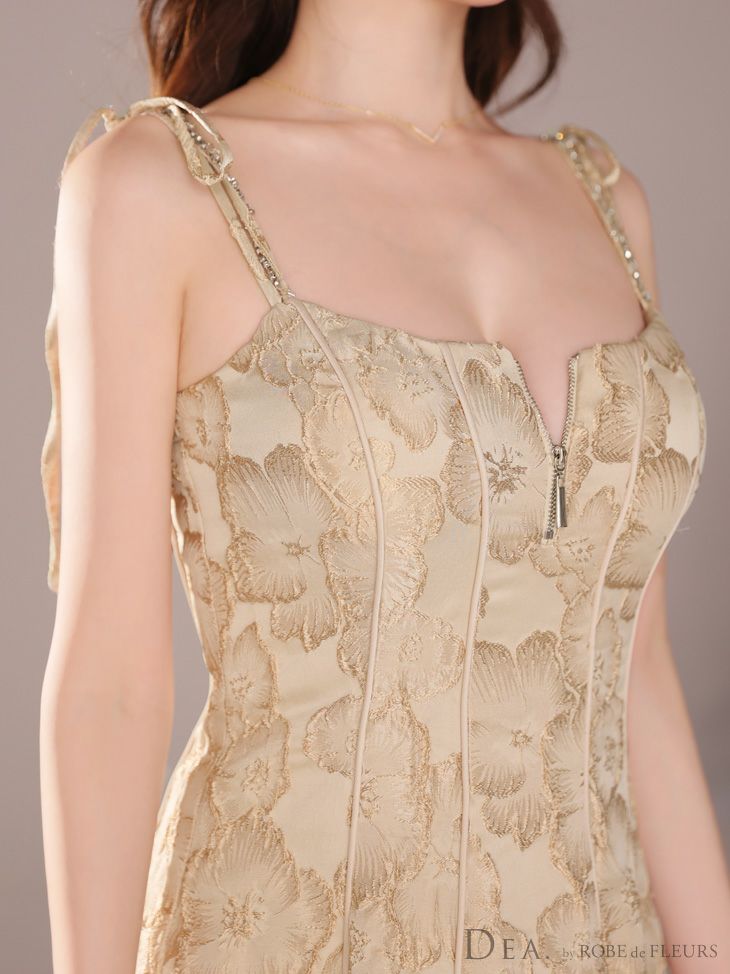 キャバドレス ロングドレス DEA.byROBEdeFLEURS ディアバイローブドフルール 高級花柄ジャガードショルダーリボンキャミソールジップAラインロングドレス