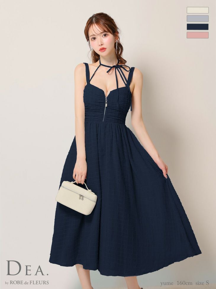 パステルカラーがCUTE☆ [DEA.byROBEdeFLEURS/ディアバイローブドフルール] 高級2wayホルターネックリボンノースリーブジップ刺繍レースチェック柄Aラインロングドレス