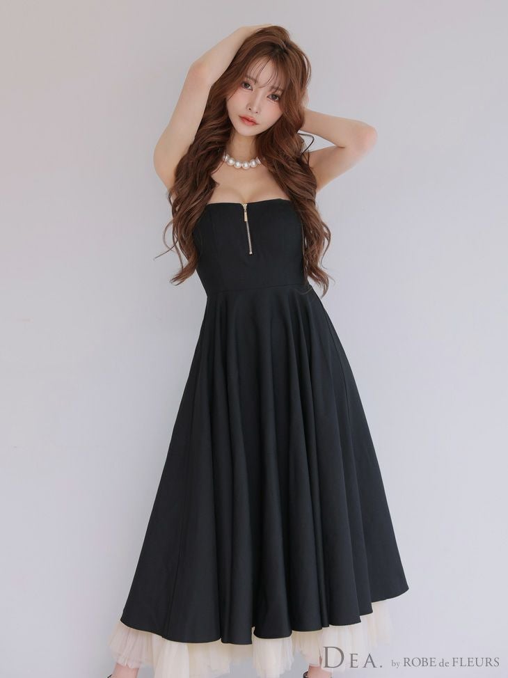 4. [DEA.byROBEdeFLEURS/ディアバイローブドフルール] 高級 ブランド ワンピース Aラインロングドレス キャミソール ジップ レイヤードチュール