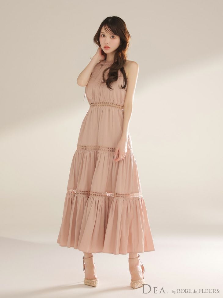 リボンタイで可愛いお顔周りに♡ [DEA.byROBEdeFLEURS/ディアバイローブドフルール] 高級 ブランド ワンピース Aラインロングドレス ホルターネック 谷間 ネックリボン バストカット スカラップレース