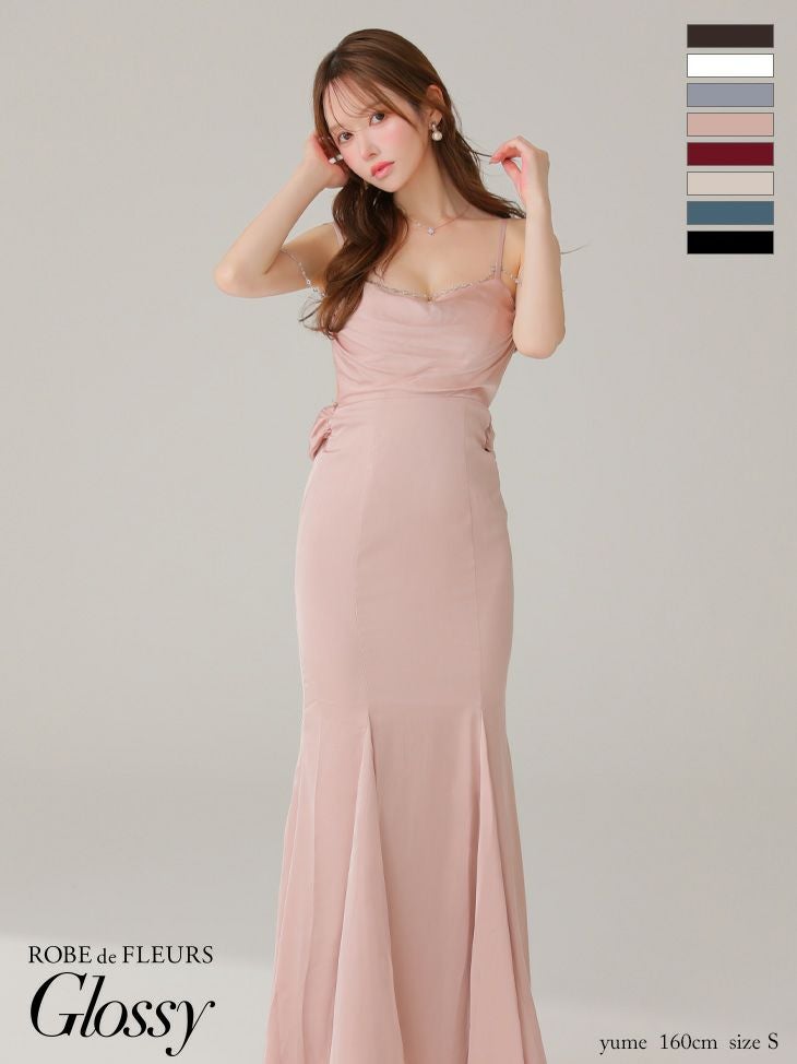 どこから見てもセクシーに♡ [ROBEdeFLEURSGlossy/ローブドフルールグロッシー] 高級キャミソールビジューチェーンサテンマーメイドタイトロングドレス