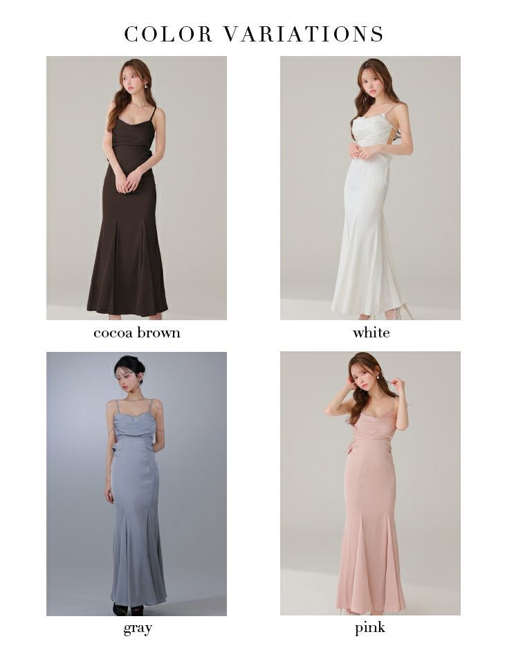 4. [ROBEdeFLEURSGlossy/ローブドフルールグロッシー] 高級キャミソールビジューチェーンサテンマーメイドタイトロングドレス
