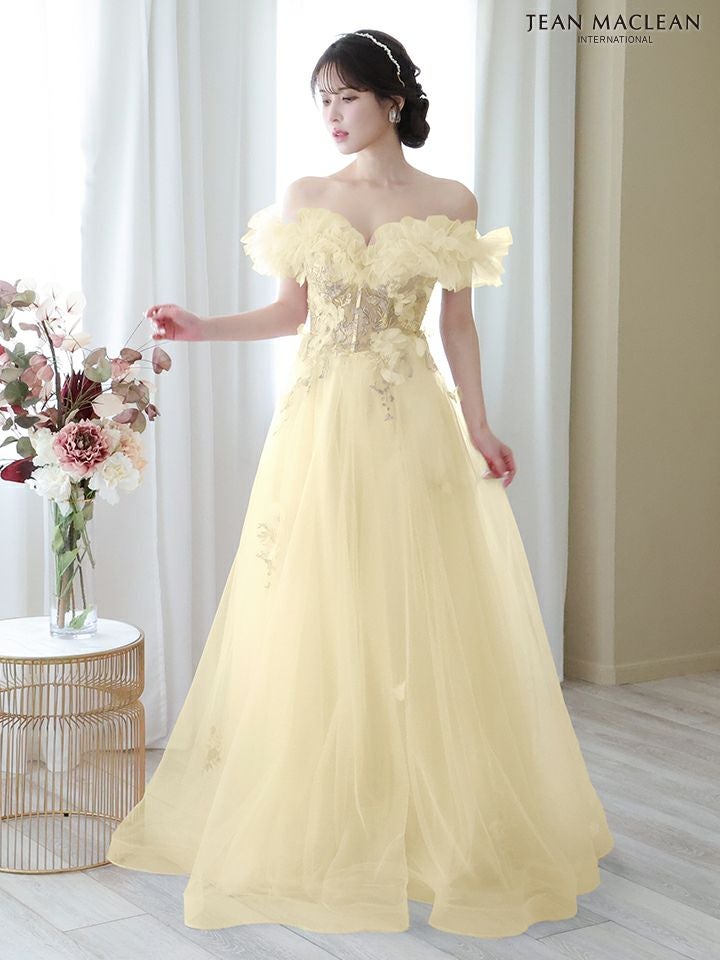 4. [JEANMACLEAN/ジャンマクレーン] 高級 バースデーオフショルダーフラワーモチーフAラインロングドレス