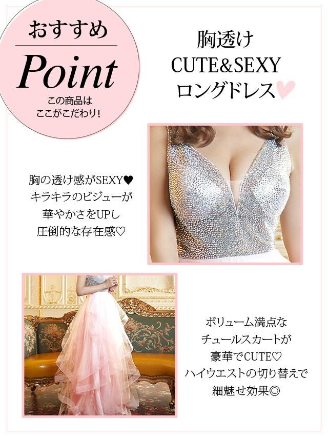 LA直輸入 ゴージャスビジューキャミソールチュールロングバースデードレス (XSサイズ~Mサイズ)