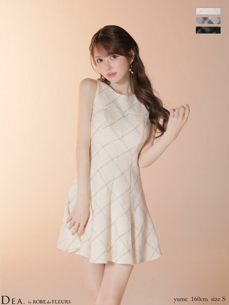 他の画像を見る 上品な女性らしさを演出♡ 予約商品【4月下旬入荷予定】[DEA.byROBEdeFLEURS/ディアバイローブドフルール] 高級 ブランド ワンピース Aラインミニドレス 谷間 ノースリーブ チェック柄 ツイード プリーツ ¥ 29,480 税込 お気に入りに追加