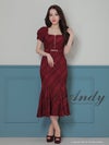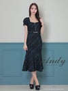 キャバドレス Andy アンディ 高級半袖チェック柄ツイードジップマーメイドタイトロングドレス