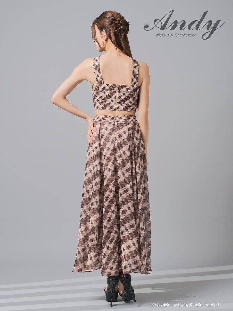 キャバドレス Andy アンディ 高級 ノースリーブ Aラインロングドレス ジップ くびれ クロスネック チェック柄
