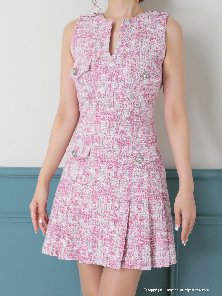 3. [Andy/アンディ] 高級ノースリーブチェック柄ツイードポケットデザインフレアミニドレス