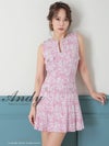 5. [Andy/アンディ] 高級ノースリーブチェック柄ツイードポケットデザインフレアミニドレス