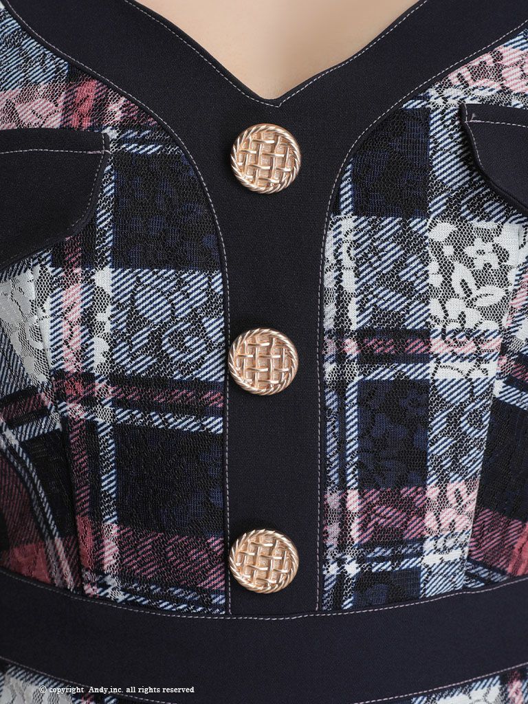 チェック柄xレースが大人可愛い☆ [Andy/アンディ] 高級ガーリーチェック柄フリル袖ノースリーブフレアミニドレス