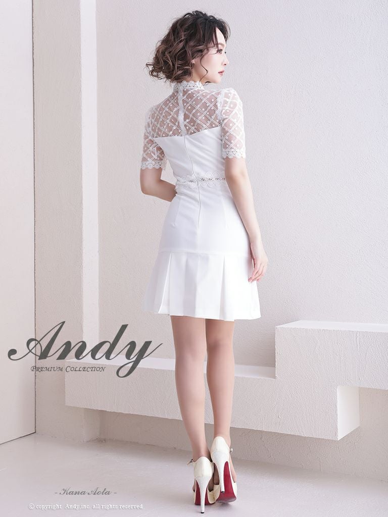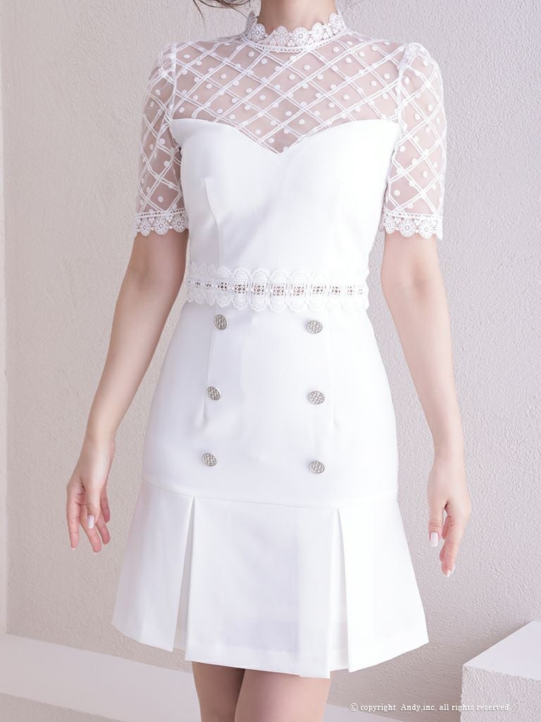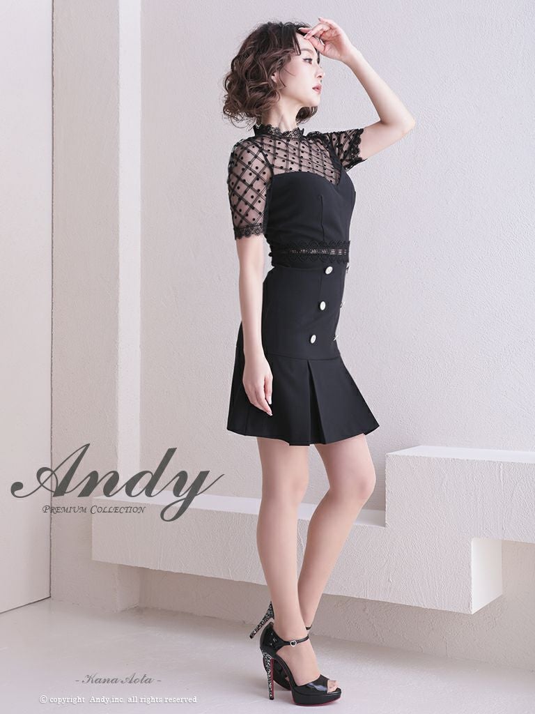 柄付きシースルーが可愛さプラス☆ [Andy/アンディ] 高級ドットチェック柄シースルーワンカラー半袖フレアミニドレス