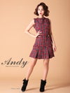 ツイードデザインが大人お洒落な☆ [Andy/アンディ] 高級ブランドノースリーブツイードチェック柄フレアミニドレス