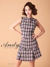 5. [Andy/アンディ] 高級ブランドノースリーブツイードチェック柄フレアミニドレス