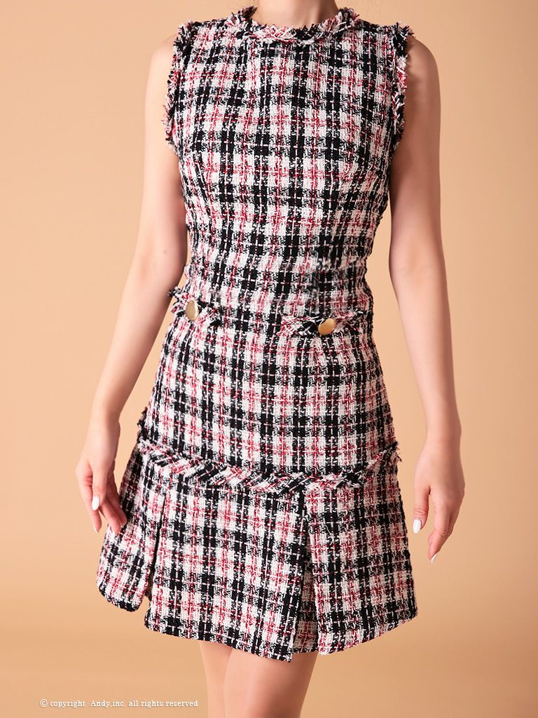 4. [Andy/アンディ] 高級ブランドノースリーブツイードチェック柄フレアミニドレス