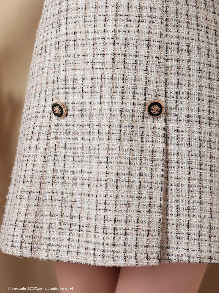 4. [an/アン] 高級半袖チェック柄ツイードボタンチェーンフレアミニドレス