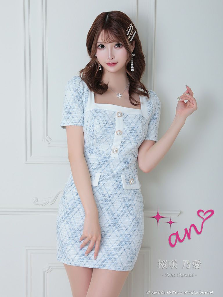 3. [an/アン] 高級パールボタンストレッチパステルカラーチェック柄半袖タイトミニドレス