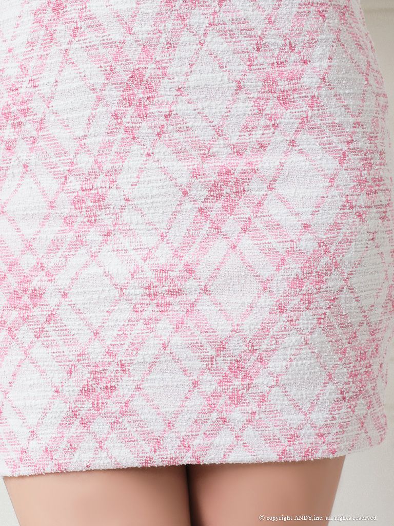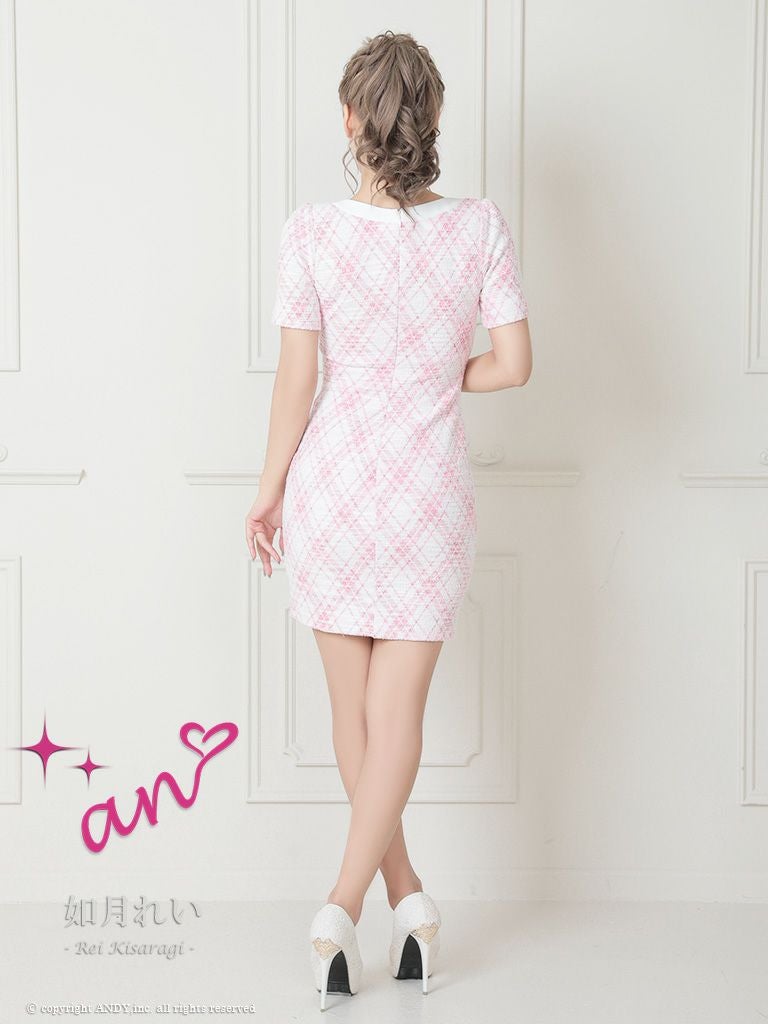 4. [an/アン] 高級パールボタンストレッチパステルカラーチェック柄半袖タイトミニドレス
