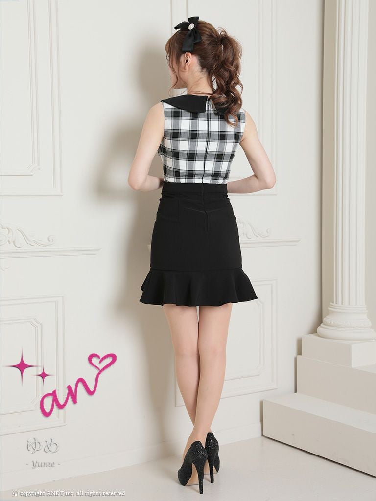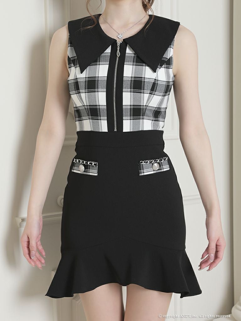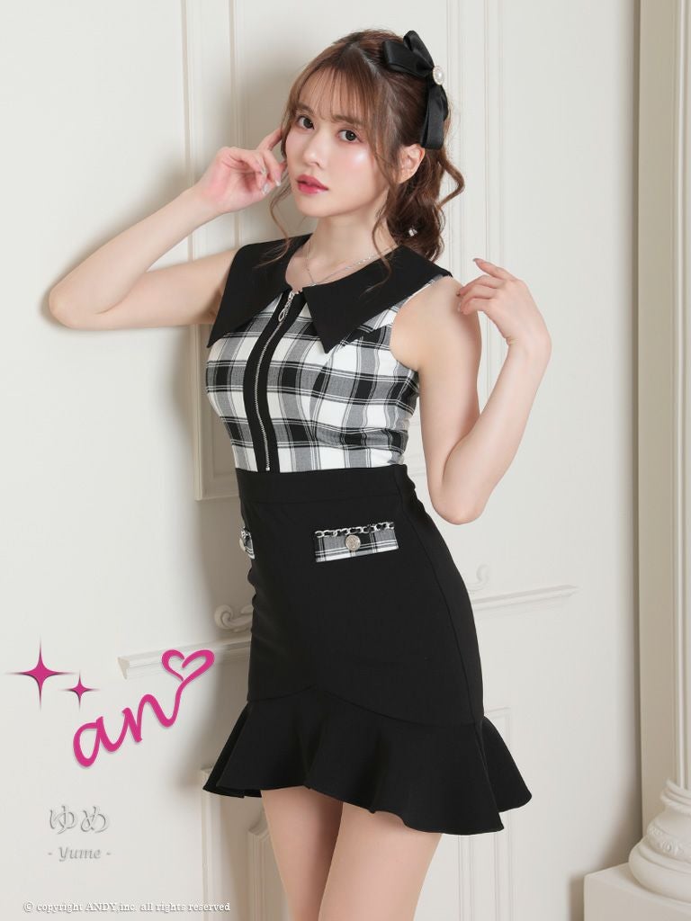キャバドレス ブランド an アン 高級襟デザインチェック柄ジップノースリーブタイトミニドレス