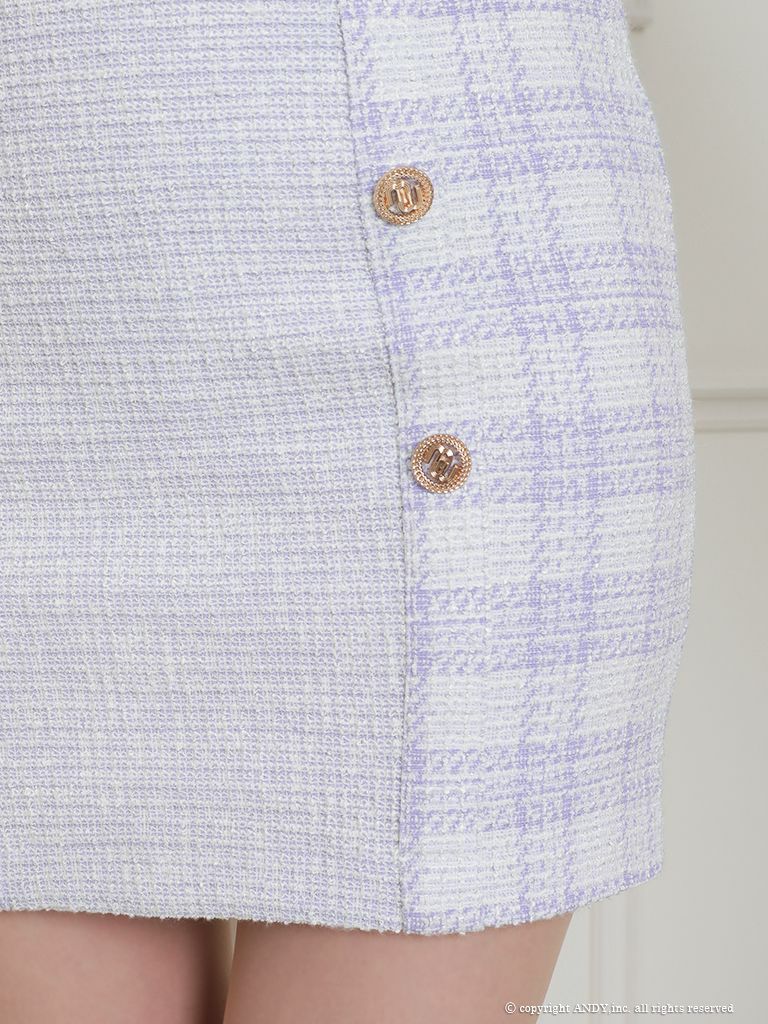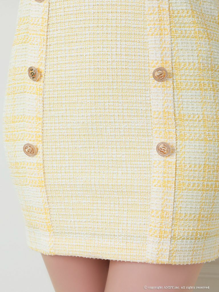 キャバドレス Andy アンディ 高級爽やかガーリーチェック柄ツイード半袖タイトミニドレス