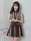 フロントジッパーで露出度を調整☆ [an/アン] 高級 チェック柄 ツイード 襟付き ジップ ノースリーブ フレアミニドレス