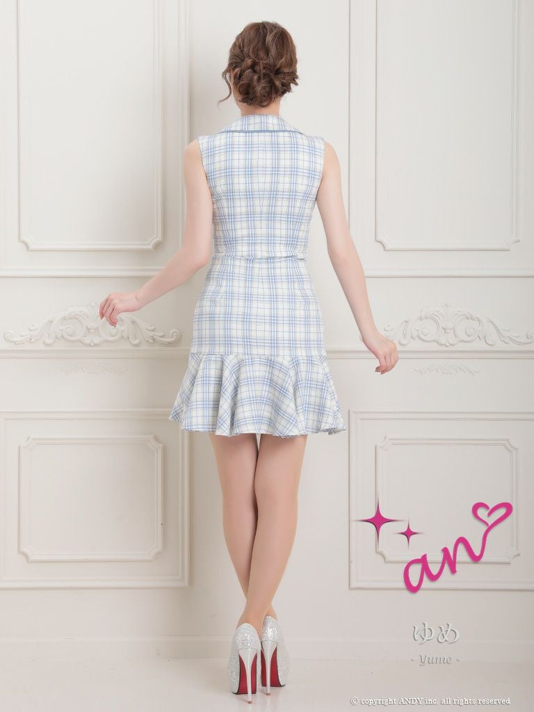 キャバドレス Andy アンディ 高級襟デザインチェック柄ノースリーブフレアミニドレス