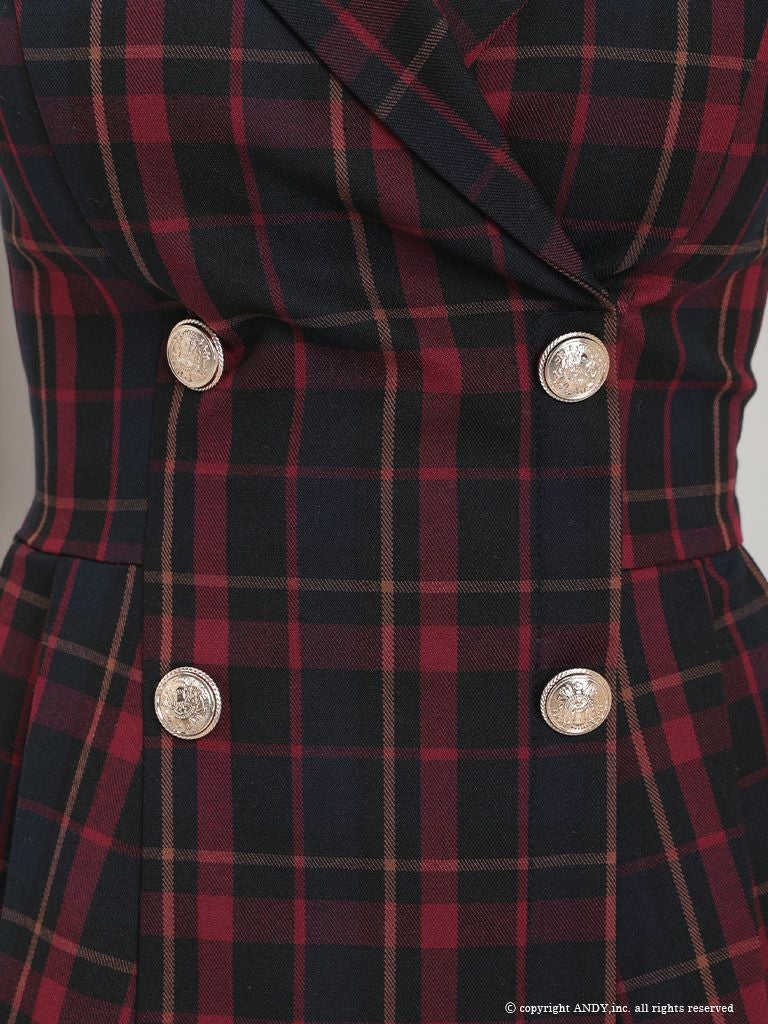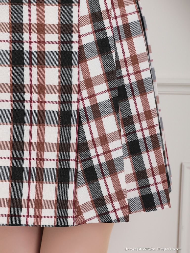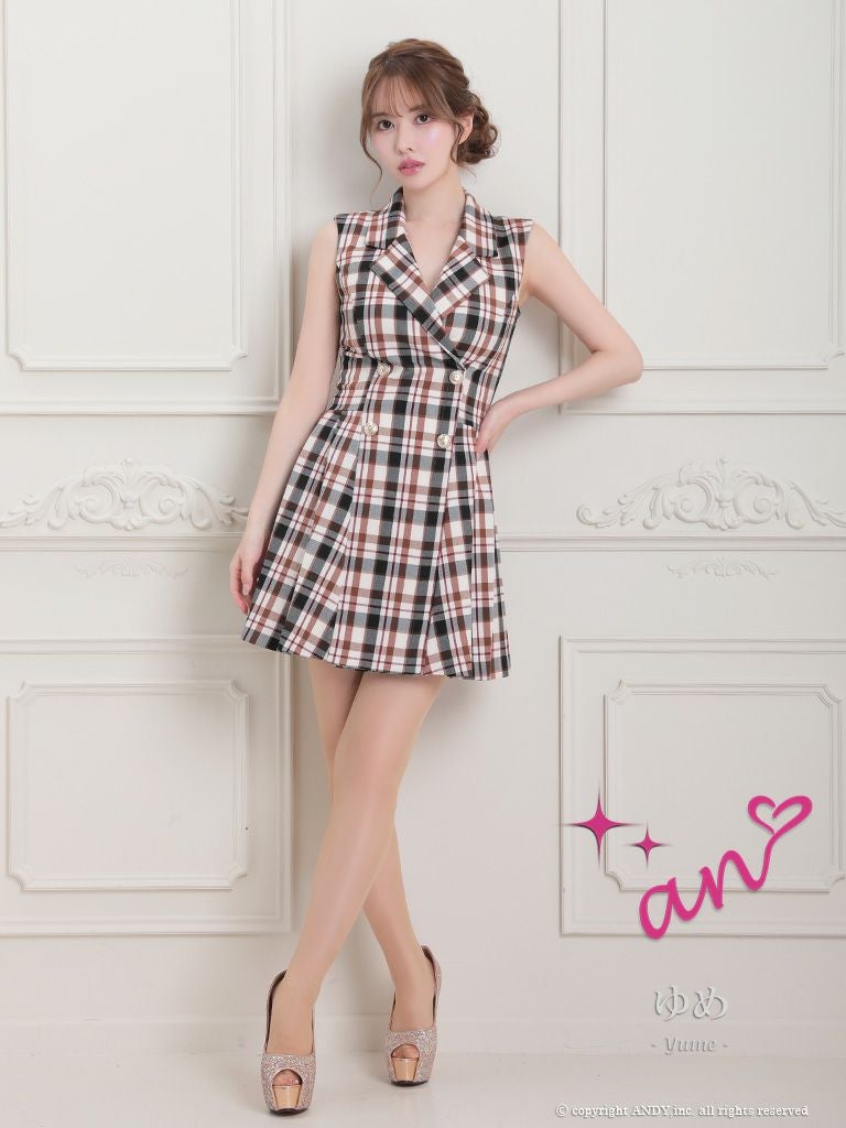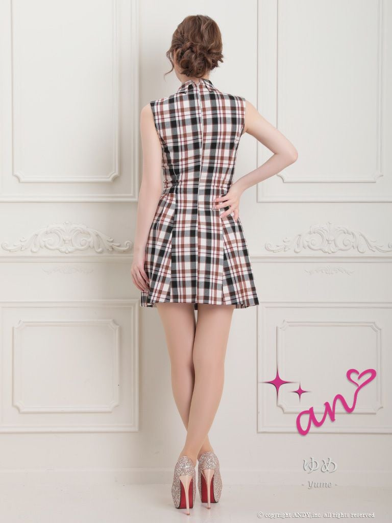 5. [an/アン] 高級 チェック柄 襟付き ノースリーブ フレアミニドレス