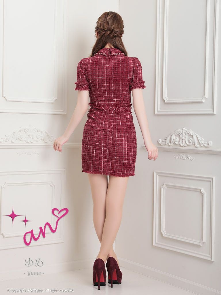 甘かわいいガーリーツイード☆ [an/アン] 高級フロントジップ 半袖 チェック柄 ツイード タイトミニドレス
