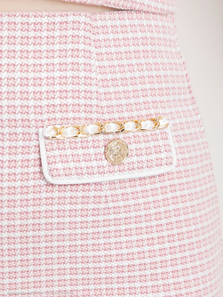 4. [an/アン] 高級 ノースリーブ 襟付き ツイード チェック柄 セットアップ ポケットデザイン ゴールドボタン タイトミニドレス