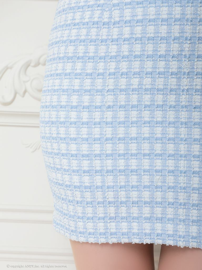キャバドレス Andy アンディ 高級チェック柄フロントジップツイード半袖タイトミニドレス