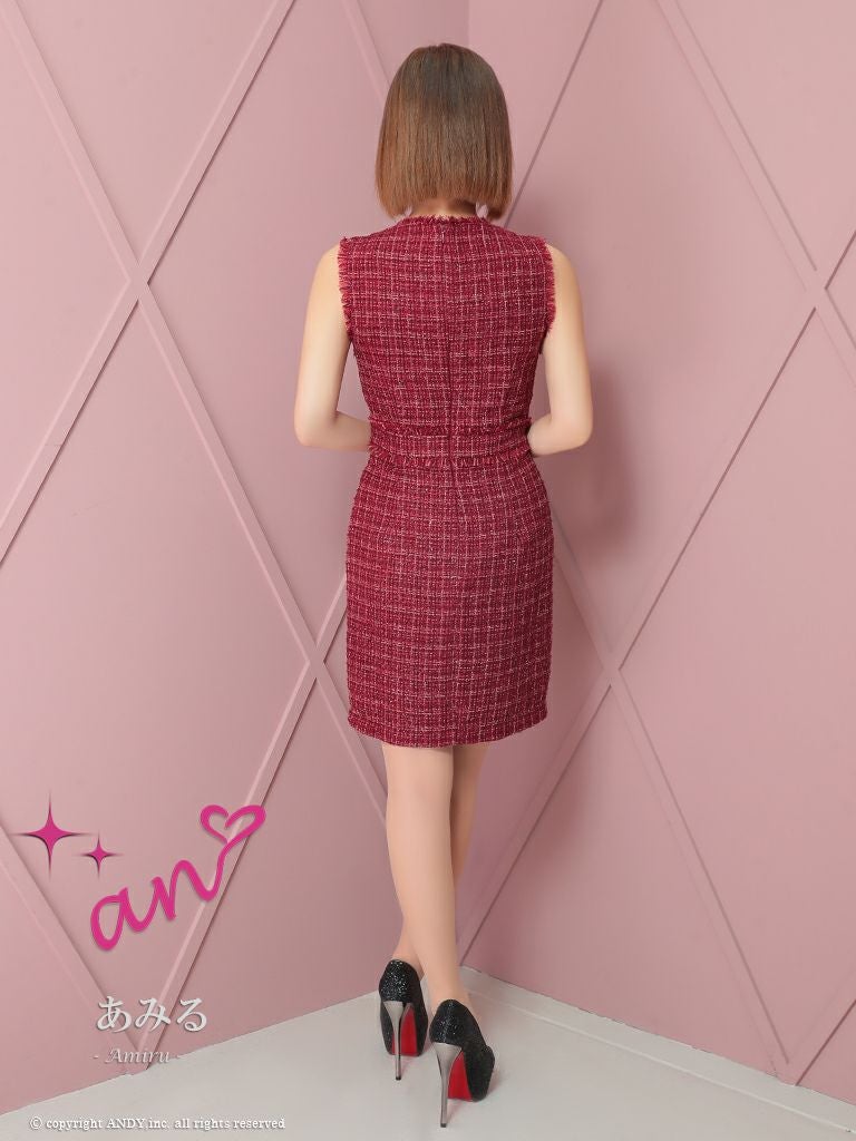 キャバドレス an アン 高級ノースリーブチェック柄ツイードジップポケットデザインタイトミニドレス