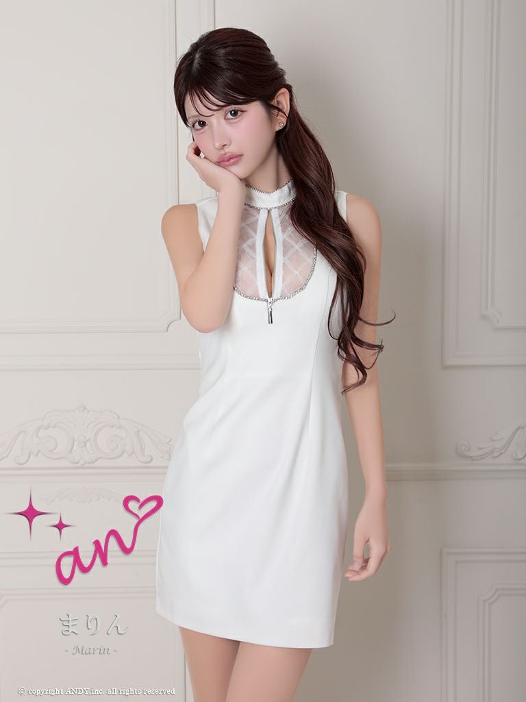 キャバドレス an アン 高級ノースリーブジップチェック柄チュールレースビジュータイトミニドレス