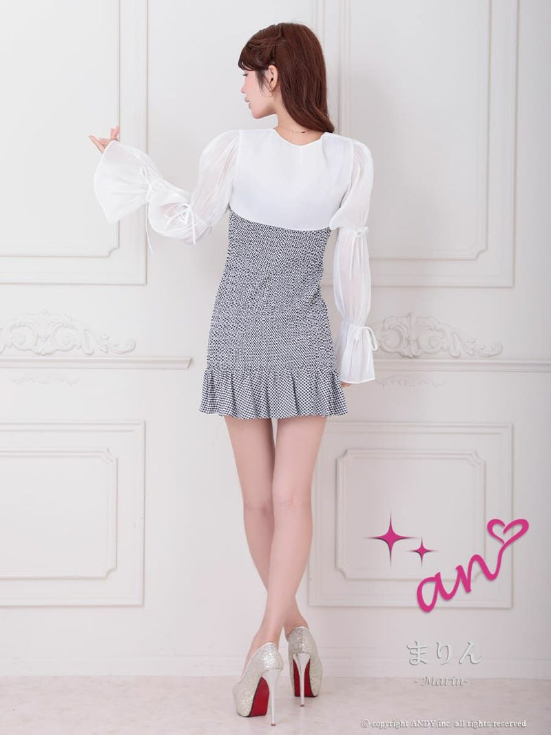キャバドレス an アン 高級 キャミソール 2way ボレロ 長袖 ジップ ギンガムチェック フリル リボン タイト ミニドレス