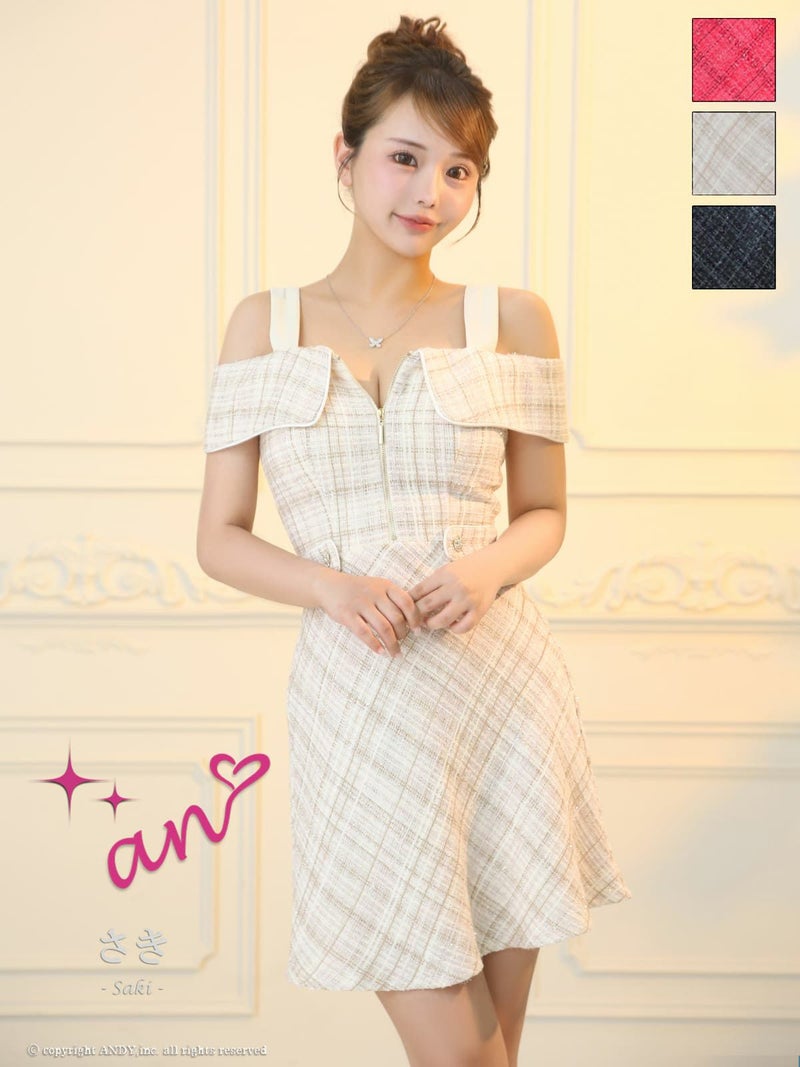 とびきりキュートなミニドレス♡ [an/アン] 高級 タイト ミニドレス 谷間 肩出し 二の腕カバー ジップ チェック柄