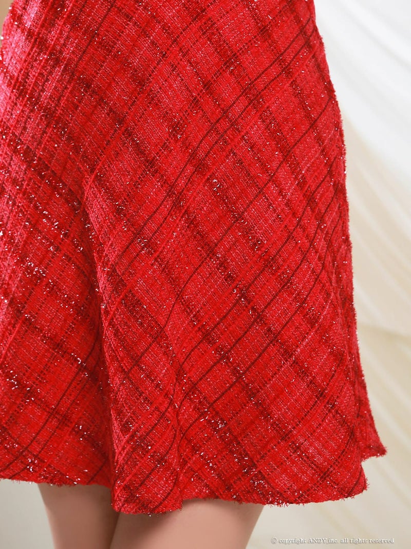 [an/アン] 高級 タイト ミニドレス 谷間 肩出し 二の腕カバー ジップ チェック柄