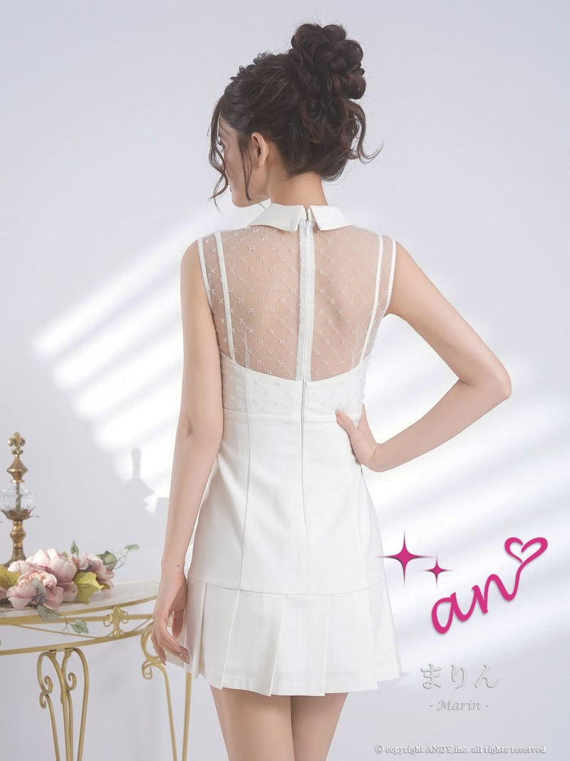4. [an/アン] 高級 ノースリーブ フレアミニドレス バストカット ジップ リボン 襟付き プリーツ