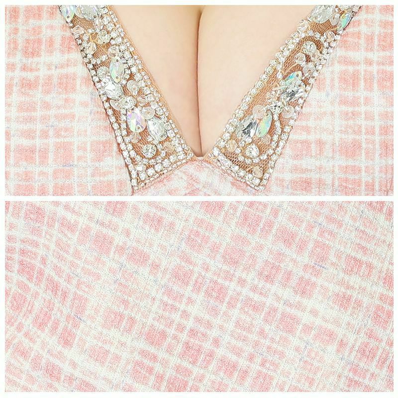 CUTEなツイードから柔らかな雰囲気☆ [Angel-R/エンジェルアール] 高級バストビジューフラワーレースチェック柄キャミソールタイトミニドレス