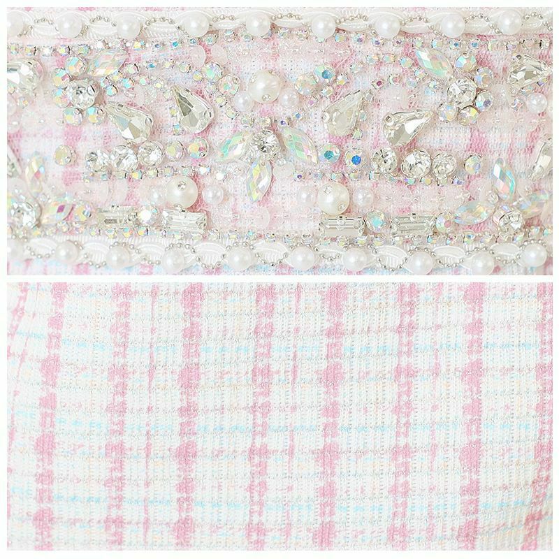 CUTE&SEXYな周囲の視線を引き付ける贅沢なドレス☆ [Angel-R/エンジェルアール] 高級バストカラーメッシュウエストビジューチェック柄キャミソールタイトミニドレス