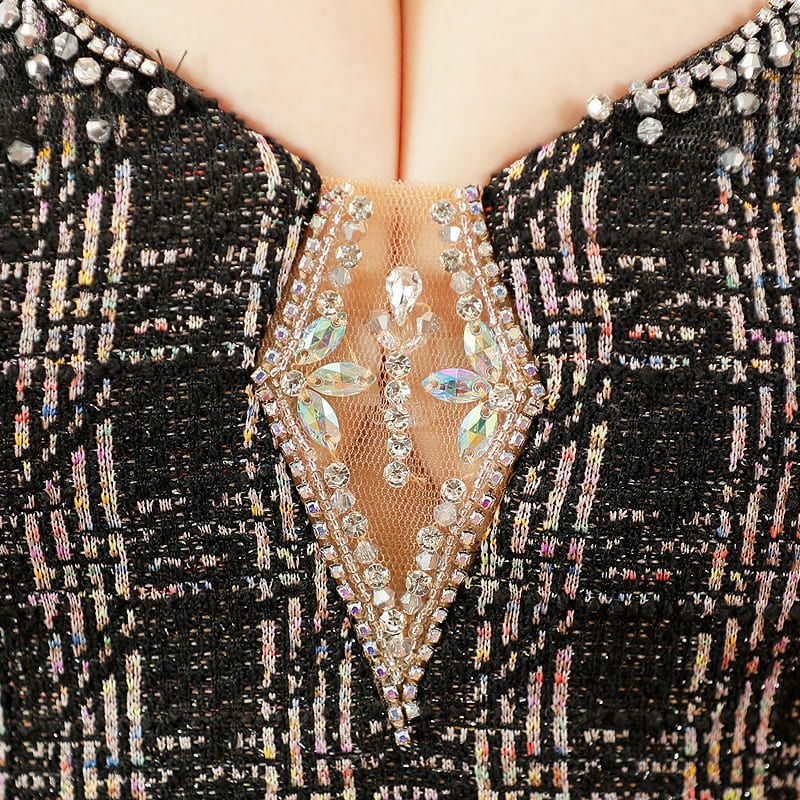 5. [Angel-R/エンジェルアール] 高級ミックスチェック柄バストダイヤビジューキャミソールくびれタイトミニドレス