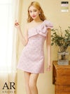 キャバドレス ミニドレス [Angel-R/エンジェルアール] 高級ワンショルダーフロントリボンチェック柄スパンコールツイードフレアミニドレス