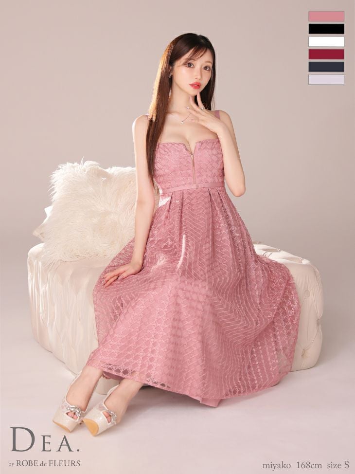 5. SALE [DEA.byROBEdeFLEURS/ディアバイローブドフルール] 高級 フロントジップ チェック柄 チュール ワンピース キャミソール Aラインロングドレス