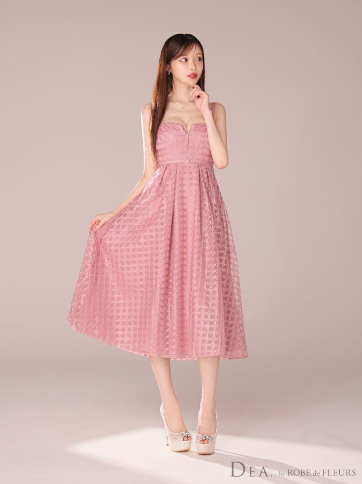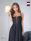 さりげない肌見せを叶える☆ SALE [DEA.byROBEdeFLEURS/ディアバイローブドフルール] 高級 フロントジップ チェック柄 チュール ワンピース キャミソール Aラインロングドレス