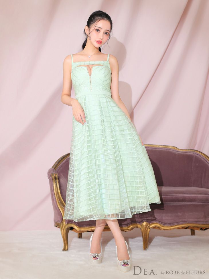5. SALE [DEA.byROBEdeFLEURS/ディアバイローブドフルール] 高級 バースデー キャミソール バストカット チェック柄 ジップ 谷間魅せ Aラインロングドレス