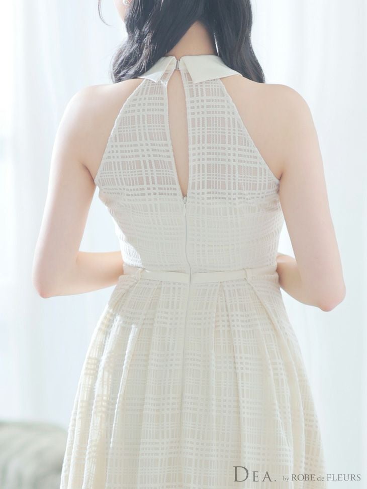 バックシースルーでちょっぴりセクシー☆ [DEA.byROBEdeFLEURS/ディアバイローブドフルール] 高級 襟付き ホルターネック ウエストベルト チェック柄 シースルー Aラインロングドレス