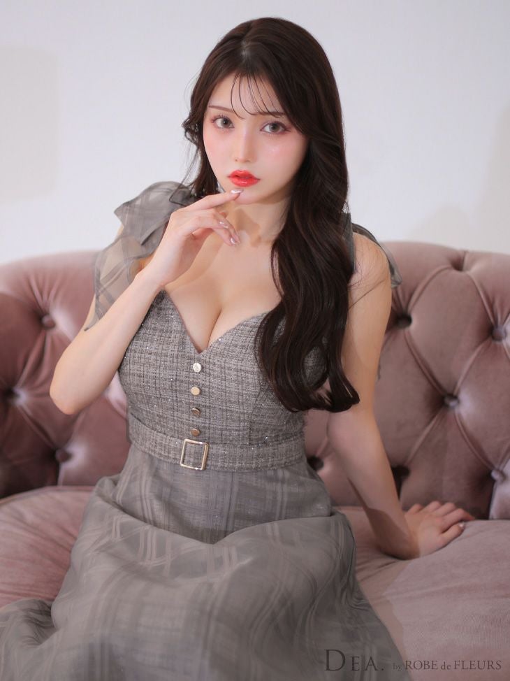 6. [DEA.byROBEdeFLEURS/ディアバイローブドフルール] 高級ラメツイードキャミソールチェック柄オーガンジーワンピースAラインロングドレス