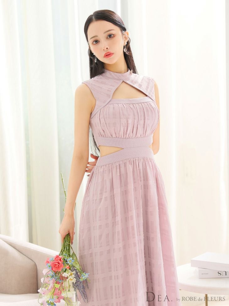 ウエストカットで上品に肌魅せ☆ [DEA.byROBEdeFLEURS/ディアバイローブドフルール] 高級バストウエストカットワンカラーノースリーブチェック柄フレアロングドレス