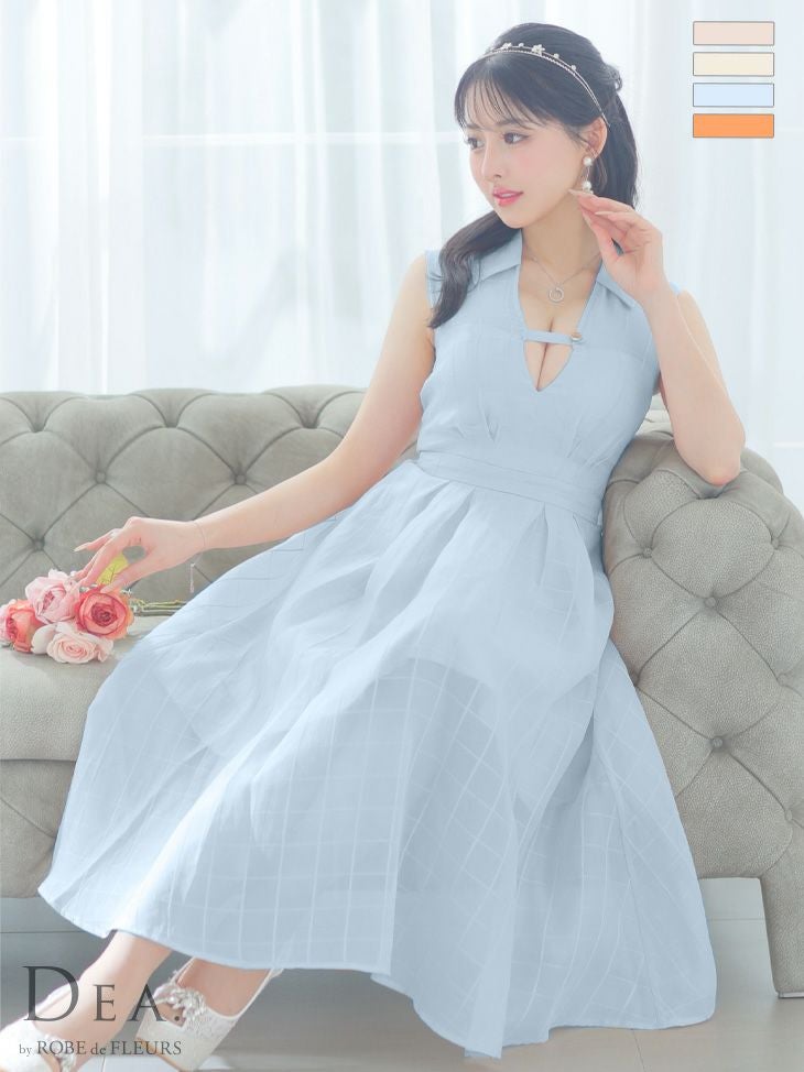 バストアピールで視線を独占☆ [DEA.byROBEdeFLEURS/ディアバイローブドフルール] 高級 ノースリーブ 襟付き バストカット チェック柄 谷間魅せ Aラインロングドレス