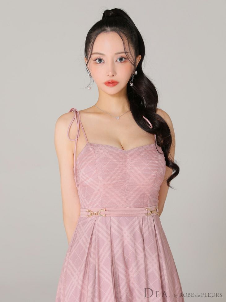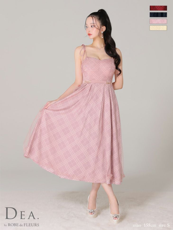 キャバドレス ロングドレス [DEA.byROBEdeFLEURS/ディアバイローブドフルール]  高級キャミソールチェック柄ウエストベルトチュールAラインロングドレス